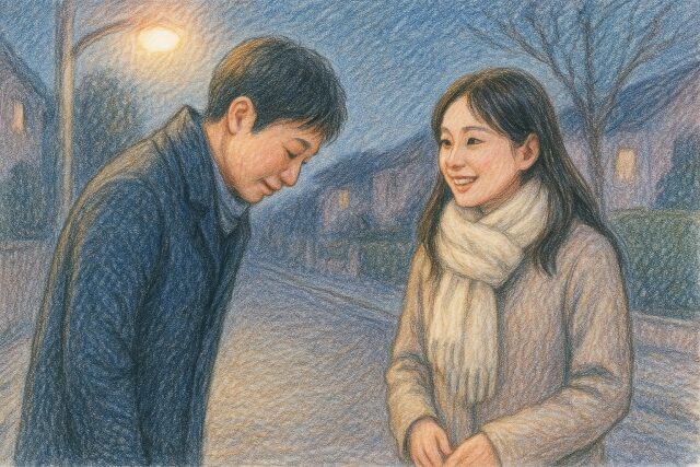 → 「今夜は冷えますね。だんだん冬らしくなってきましたね。」のように、話題を季節や天候に広げると、恋愛的なニュアンスが薄まります。